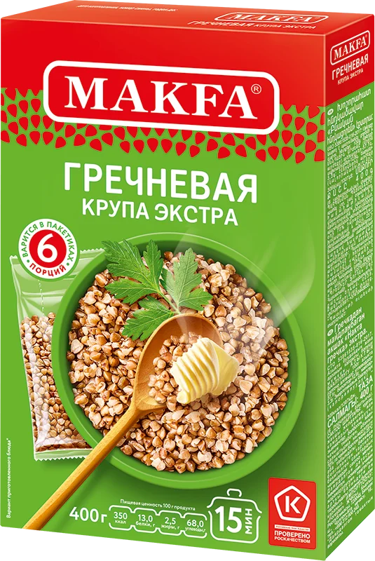 Одна упаковка — 6 варочных пакетиков. В одном варочном пакетике содержится оптимальное количество крупы на одну персону.
