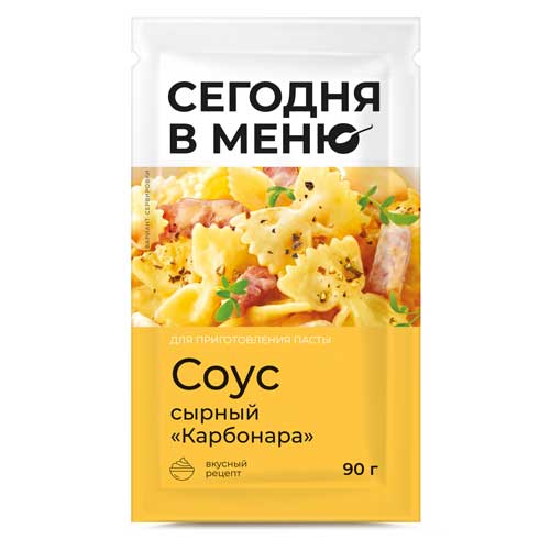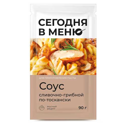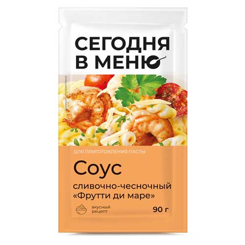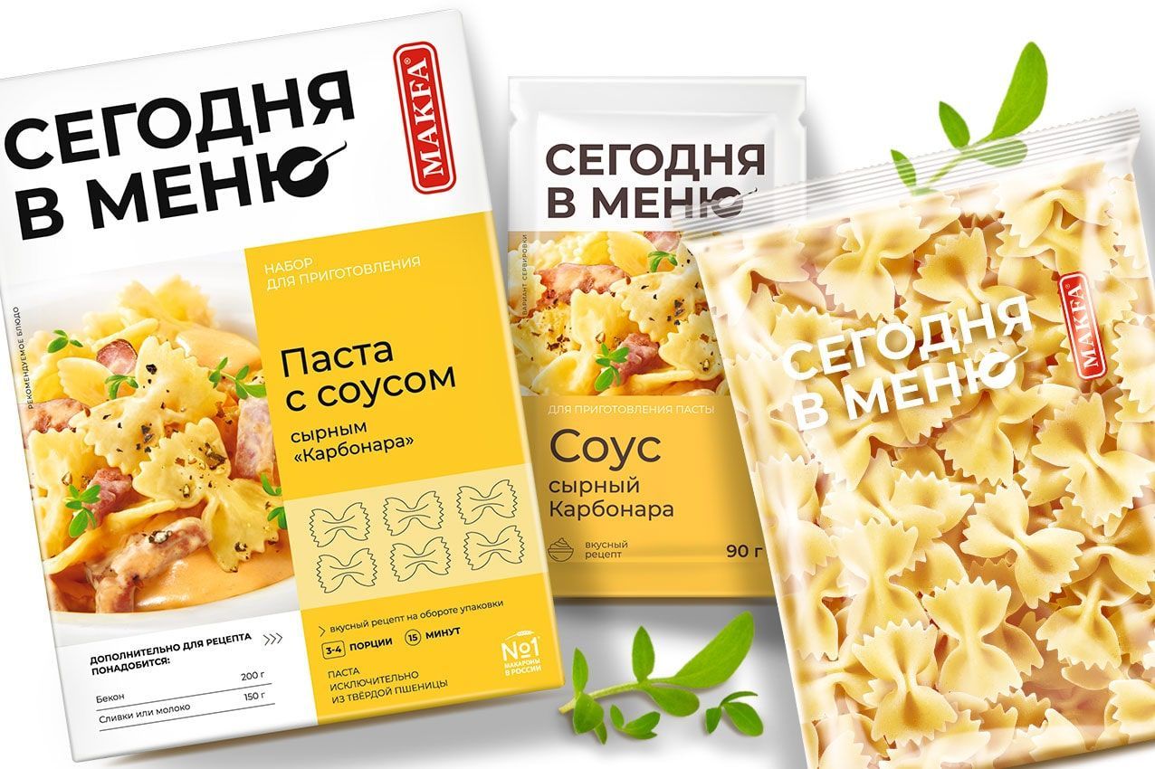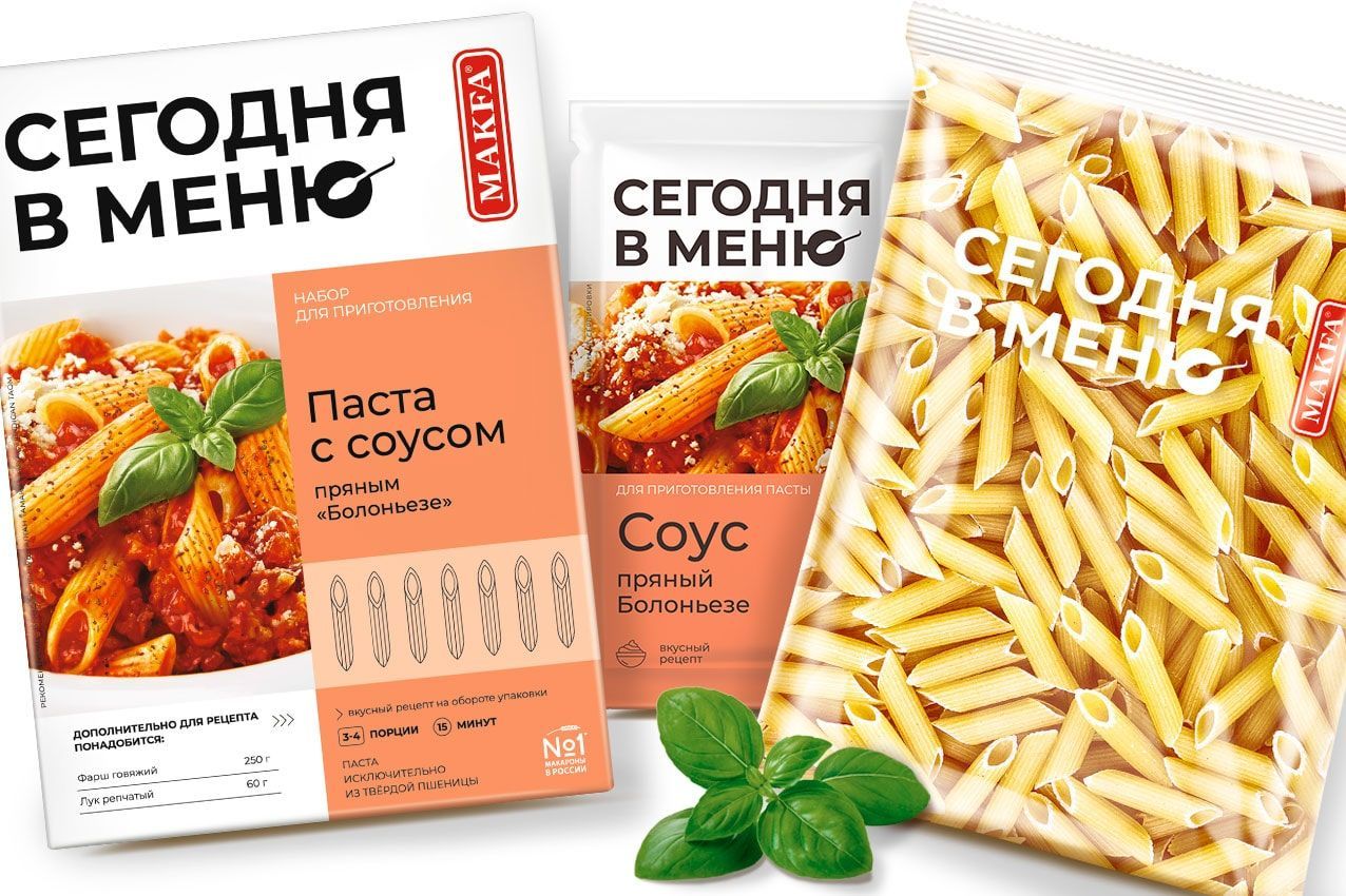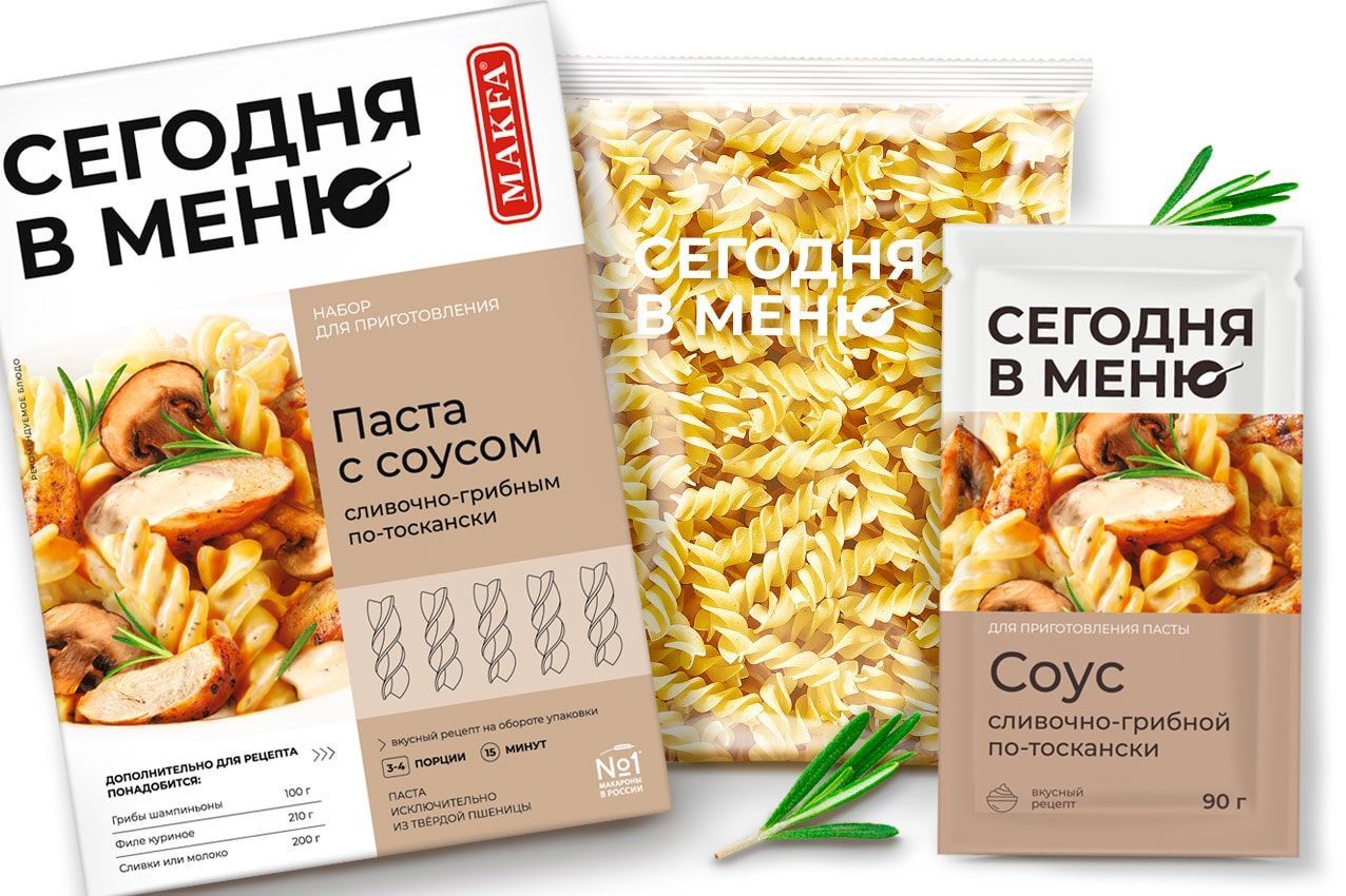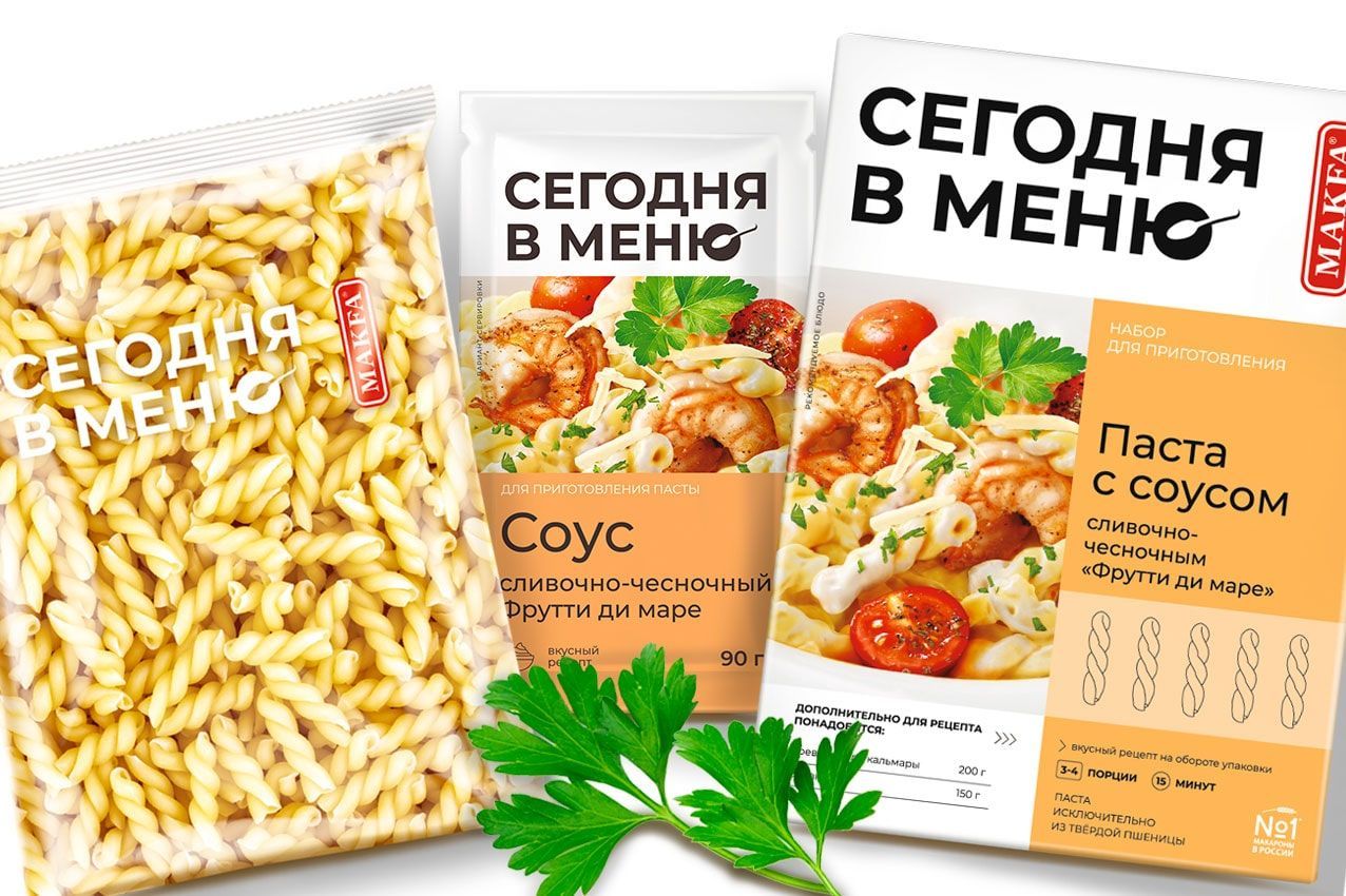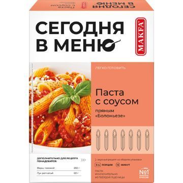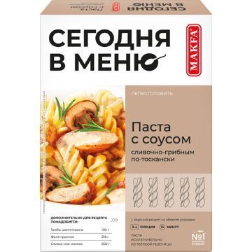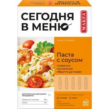 В коробке – паста из твердой пшеницы MAKFA 250 г и оригинальный соус-основа 90 г, специально разработанный для бренда «СЕГОДНЯ В МЕНЮ». Соус также можно приобрести отдельно.