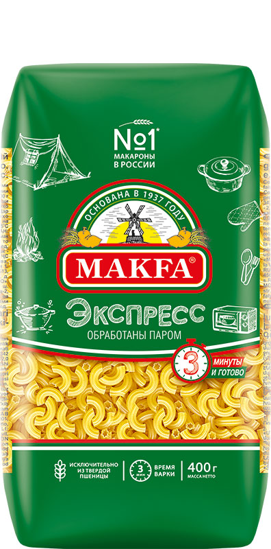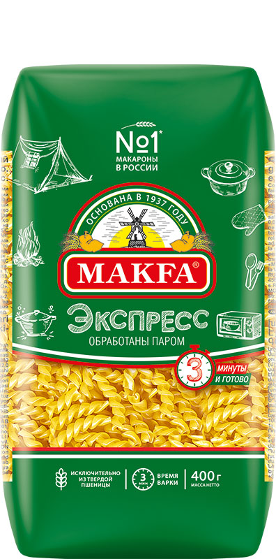 Чтобы вы могли сварить макаронные изделия за 3 минуты, мы создали свою формулу быстрого приготовления. Благодаря пропариванию макаронные изделия «Экспресс» варятся в два раза быстрее обычных макарон. И при этом сохраняют всю пользу твердой пшеницы. Их можно готовить традиционным способом — на плите, можно — в микроволновой печи.