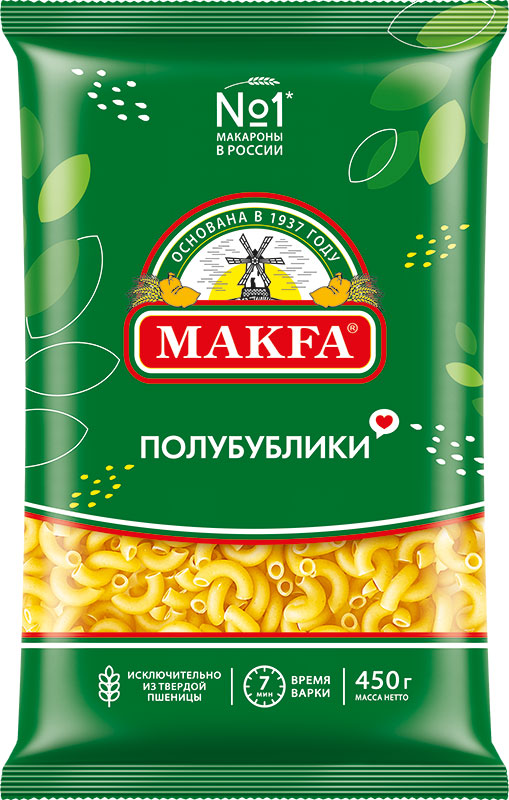 Макаронные изделия маленькой формы в виде загнутых полых рожков, которые варятся всего 5 минут. Полубублики традиционно используют для приготовления детских блюд, салатов и супов, например, для знаменитого итальянского супа минестроне.