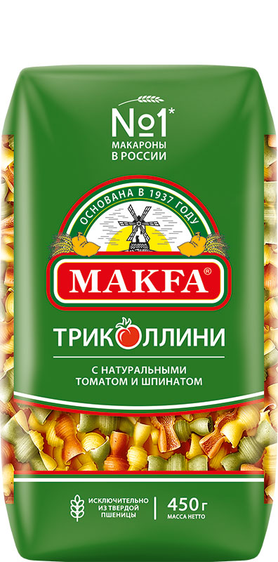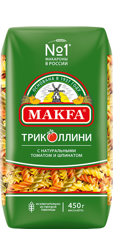 Макаронные изделия с натуральными томатом и шпинатом в составе. Супервитаминный микс полезных свойств твердой пшеницы, натуральных томата и шпината. Одни из самых полезных макаронных изделий. Томат и шпинат содержат богатый комплекс необходимых для человека полезных веществ, витаминов и минералов. Сочетание великолепных диетических свойств твердой пшеницы, натурального шпината и томата позволяют отнести этот продукт к самым полезным среди других макаронных изделий.