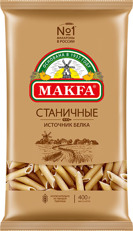 Секрет пользы и вкуса «Станичных» макарон – в использовании особой муки из твердой пшеницы. Это мука второго сорта, которая богата отрубями – ценной природной клетчаткой. Именно отруби придают макаронам темно-бежевый цвет и насыщенный пшеничный вкус с небольшой горчинкой.