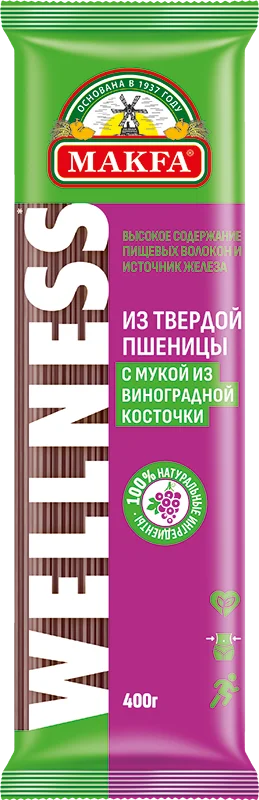 Wellness (англ. Хорошее здоровье) – уникальная линейка макарон из твердой пшеницы для тех, кто ведет активный образ жизни.