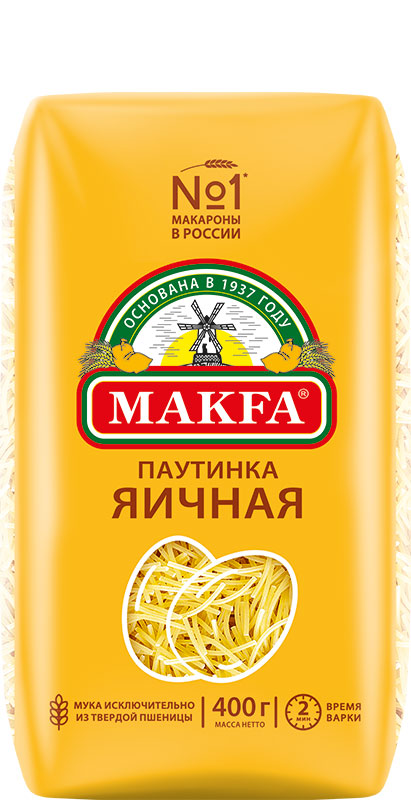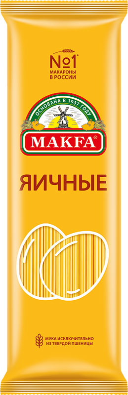 В лучших традициях домашней кухни создана линейка — яичные макароны MAKFA. В составе только классические ингредиенты высокого качества: мука из твердых сортов пшеницы, вода и яичный меланж.