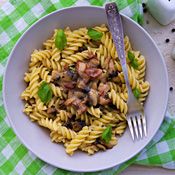 Растопить кусочек сливочного масла и обжарить до золотистого цвета слегка отваренные соцветия  капусты. Затем добавить несколько филе анчоусов, порезанную петрушку и приправить. Посыпать поджаренным фундуком и затем добавить макароны.