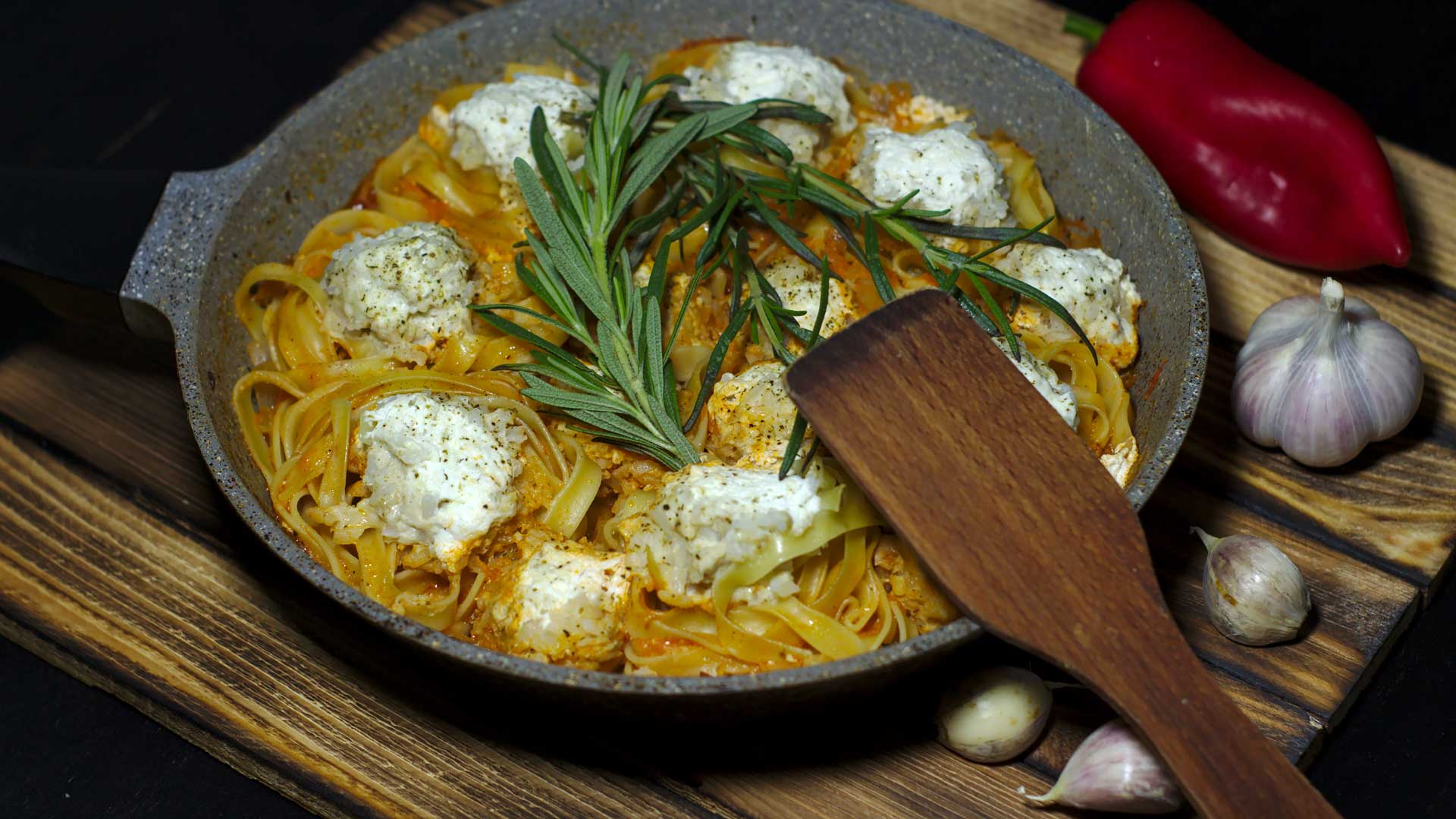 - 3 Гнезда тальятелле достать из упаковки и разложить в сковороде.