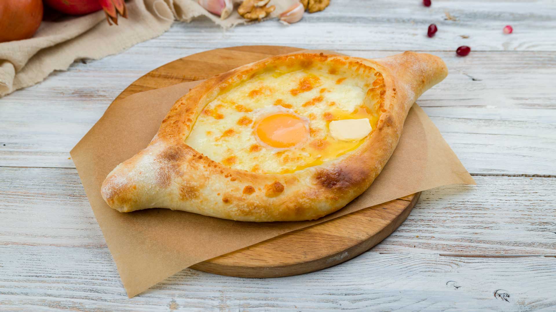Хачапури по-аджарски - это известное грузинское блюдо, которое готовится в виде открытой лодочки с начинкой из нескольких видов сыра, сырого желтка и сливочного масла. Это порционное блюдо, которое обычно едят руками, отламывая край теста и макая его в начинку.